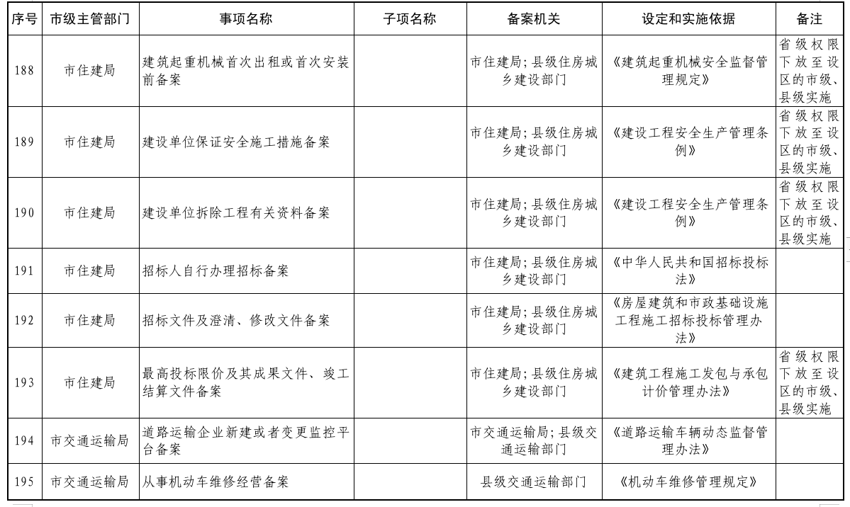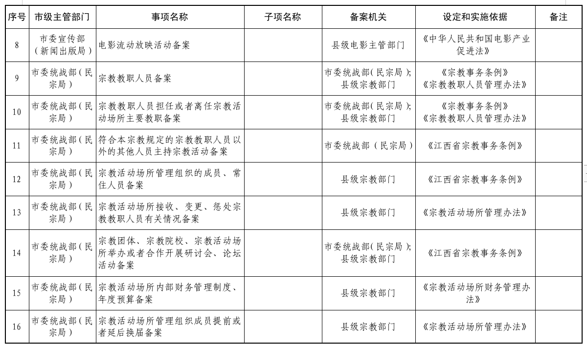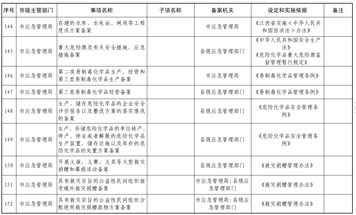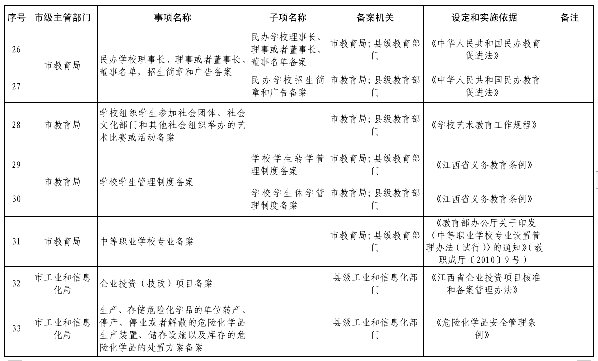 为贯彻落实《江西省人民政府办公厅关于印发江西省行政备案管理办法的通知》(赣府厅发〔2023〕20号)精神,进一步深化“放管服”改革优化营商环境,规范行政备案事项,消除市场准入隐性壁垒,提升政务服务标准化、规范化、便利化水平,经市政府研究,决定对《九江市行政备案事项清单(2023年版)》进行动态调整,现公布《九江市行政备案事项清单(2024年版)》。