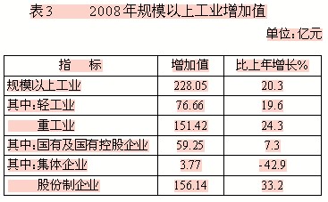 经济平稳运行。初步测算,2008年全市生产总值(GDP)700.60亿元,按可比价格计算,比上年增长12.5%。其中第一产业增加值83.86亿元,增长3.2%;第二产业增加值 384.95亿元,增长15.5%;第三产业增加值231.79亿元,增长11.6%。人均生产总值14785元,比上年增加2195元。三次产业结构由上年的13.7:53.2:33.1调整为12.0:54.9:33.1。第二产业的主导作用继续增强,工业化进程不断加快,工业增加值占GDP的比重达43.1 %,比上年提高 1.9个百分点。