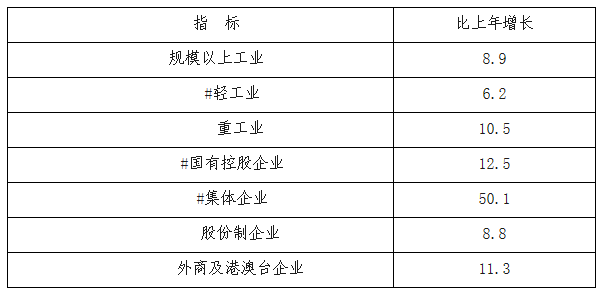 全年规模以上工业增加同比增长8.9%。五大主导产业增加值同比增长8.6%,占全市规模以上工业增加值的比重为72.5%;五大战略性新兴产业实现增加值同比增长14.7%,占全市规模以上工业增加值的比重为24.6%。