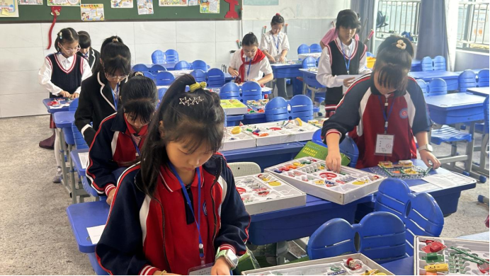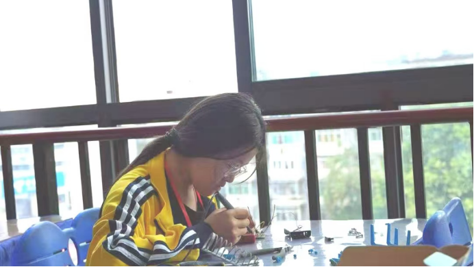 本次赛事共有电子百拼、电子小拼、科艺制作、基础型机器人、模拟飞行、创意拼、科艺编程机器人七个项目。比赛中,选手们各展风采,电子百拼图的选手们个个精神专注,一边看着比赛电路图,一边从材料盒里取出所需元器件,迅速高效地完成一道道赛题;科艺编程机器人选手利用电脑现场进行图形化编程,并通过不断调试现场组装的小车,出色地完成比赛任务;基础型机器人选手们通过焊接、组装、反复调试自己制作的机器人,力争在最短时间内走到最高分值......他们专注的神情,认真的模样,灵敏的反应,赢得裁判们的连连称赞。