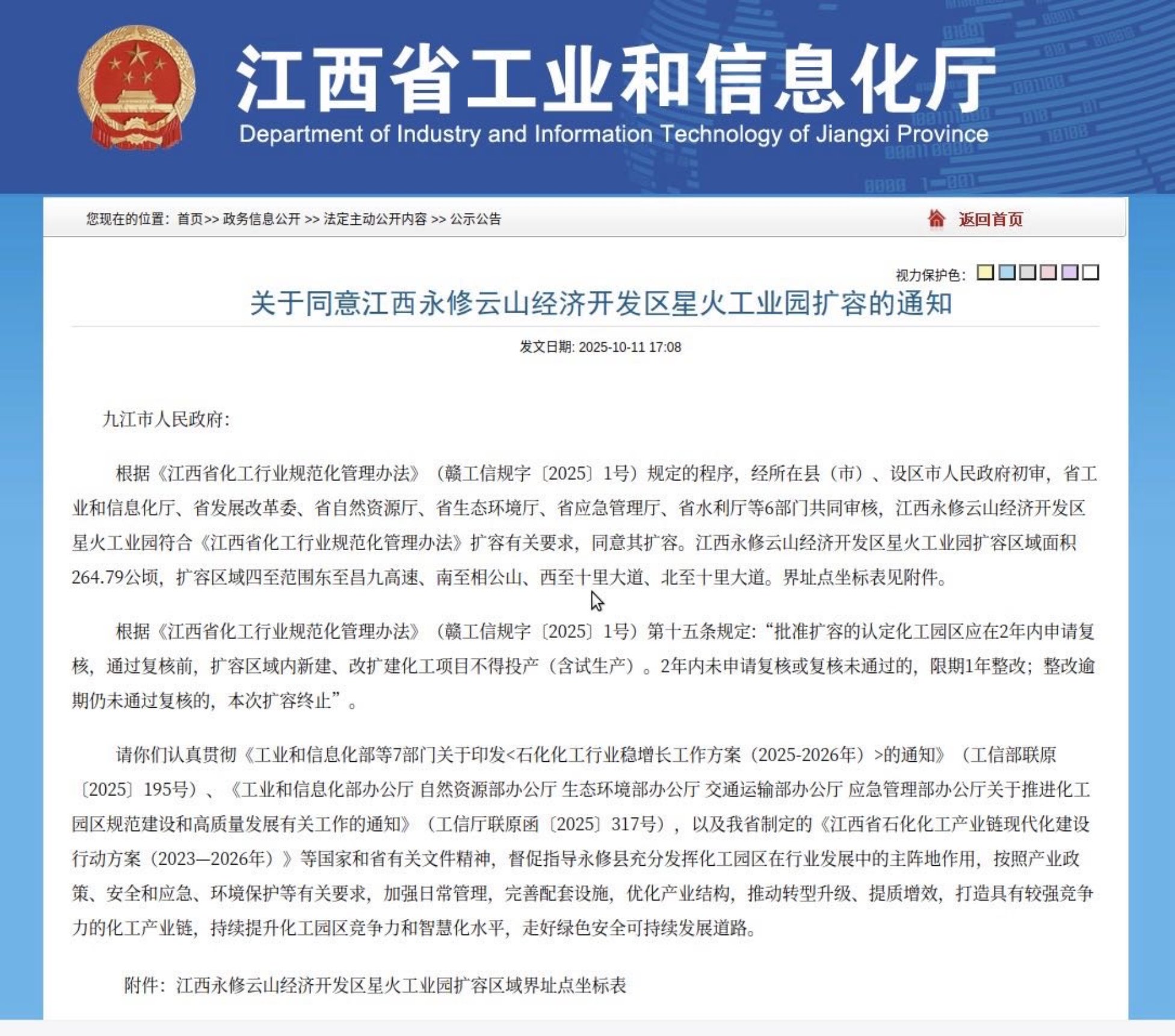 近日,省工信厅正式发文批复同意江西永修云山经济开发区星火工业园扩容,批准园区扩容面积264.79公顷,扩容后园区面积达1050.79公顷。该园区为《江西省化工行业规范化管理办法》施行以来,全省首个通过扩容的化工园区。