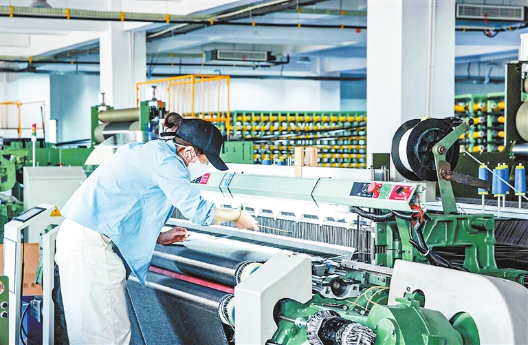 近日,位于共青城市的江西瑞奇碳纤维复合材料有限公司各个生产车间内机声隆隆,40台双幅碳纤维编织机、2台碳纤维预浸机全力运转,开足马力抓生产、赶订单,确保如期交付。目前,该企业订单充足,已排到了今年12月底。自今年3月投产以来,企业保持满负荷运转,日均产出1.5万平方米碳纤维布,已实现超过7000万元的销售额,在低空经济材料赛道迅速站稳了脚跟。(潘成 九江日报记者 刘家 摄)