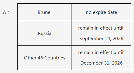 A: Nationals holding valid ordinary passports of 48 countries, namely Brunei, France, Germany, Italy, Spain, the Netherlands, Switzerland, Ireland, Hungary, Austria, Belgium, Luxembourg, New Zealand, Australia, Poland, Portugal, Greece, Cyprus, Slovenia, Slovakia, Norway, Finland, Denmark, Iceland, Andorra, Monaco, Liechtenstein, the Republic of Korea, Bulgaria,Romania, Croatia, Montenegro, North Macedonia, Malta, Estonia, Latvia, Japan, Brazil, Argentina, Chile, Peru, Uruguay, Saudi Arabia, Oman, Kuwait, Bahrain, Russia and Sweden are exempted from visa requirement if coming to China for the purpose of business, tourism, family or friends visits, exchange and transit. They can stay in China for no more than 30 days without a visa.