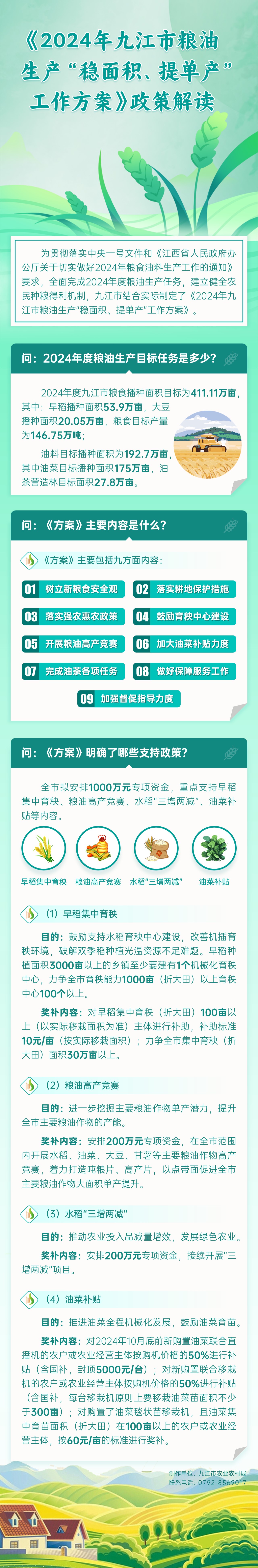 图解:《2024年九江市粮油生产 “稳面积、提单产”工作方案》