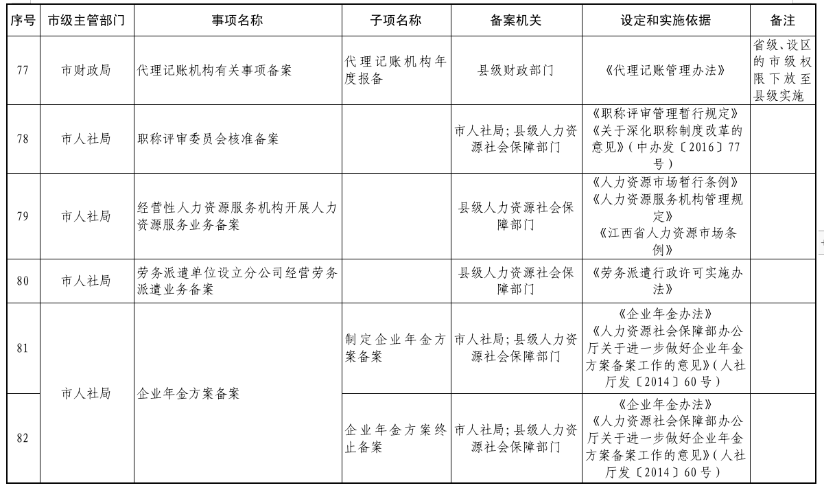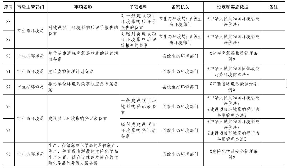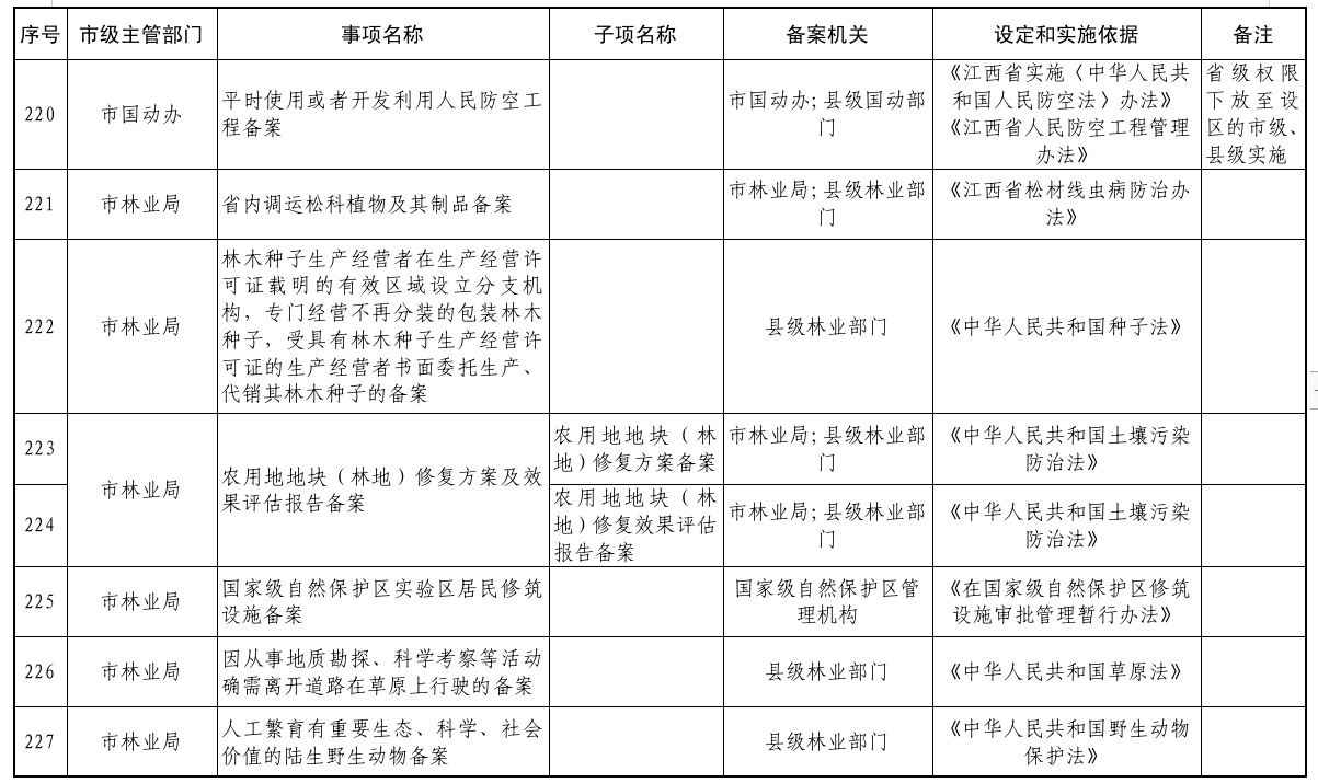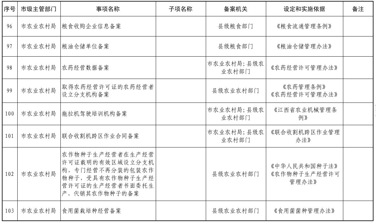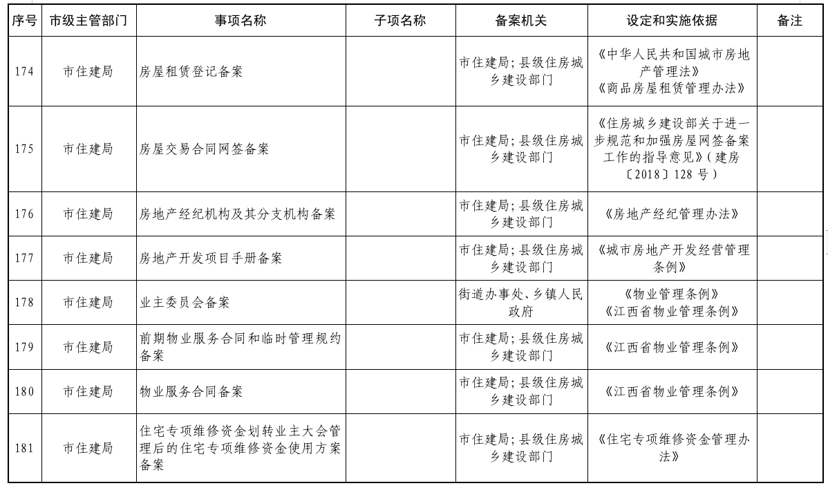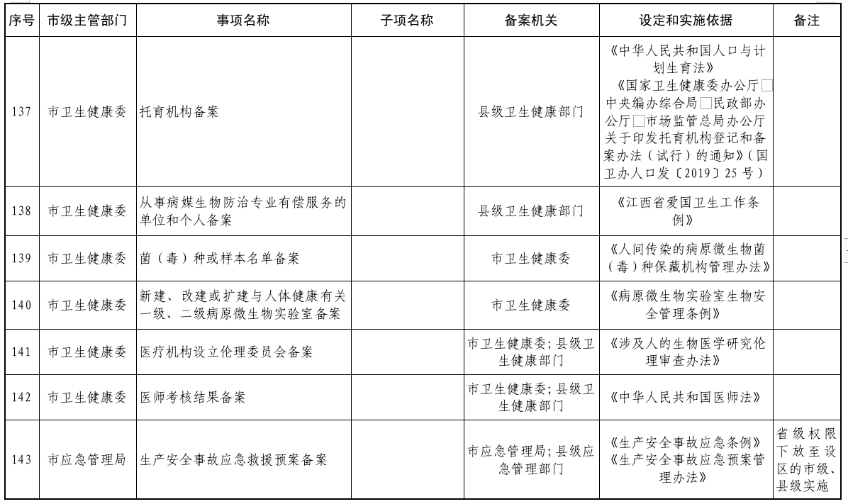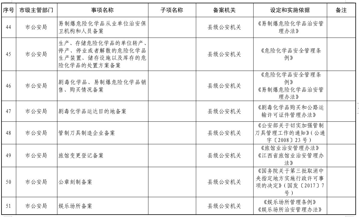 为贯彻落实《江西省人民政府办公厅关于印发江西省行政备案管理办法的通知》(赣府厅发〔2023〕20号)精神,进一步深化“放管服”改革优化营商环境,规范行政备案事项,消除市场准入隐性壁垒,提升政务服务标准化、规范化、便利化水平,经市政府研究,决定对《九江市行政备案事项清单(2023年版)》进行动态调整,现公布《九江市行政备案事项清单(2024年版)》。