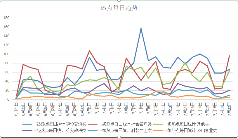 1.需要加强抗洪期间对城市道路的清理和民众情绪安抚及疏导工作。6月20日至7月20日,市民诉求类别主要集中在建设交通类、社会管理类、公安政法类以及水务、河道流域管理方面,由上文分析可以发现,城市在抗洪期间对道路积水的处理仍存在许多不足。