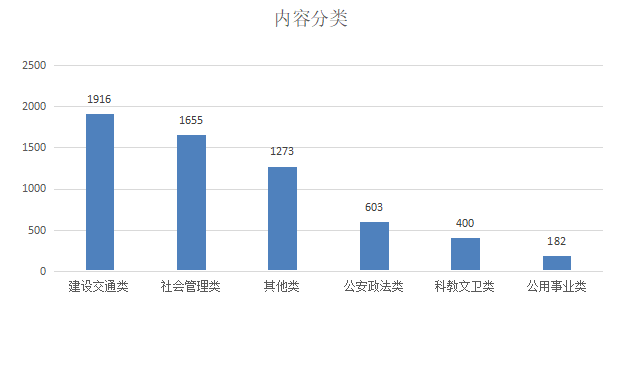 1.建设交通类诉求共1916件,其中住房保障诉求最多,602件,占比为31%;城乡建设402件,占比21%;水务251件,占比13%;交通港口216件,占比%11;环境保护213件,占比11%,绿化市容203件,占比11%。