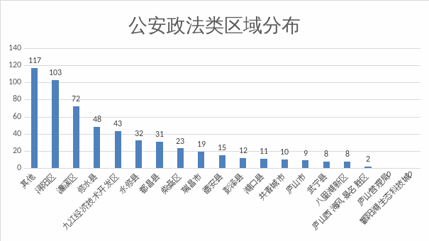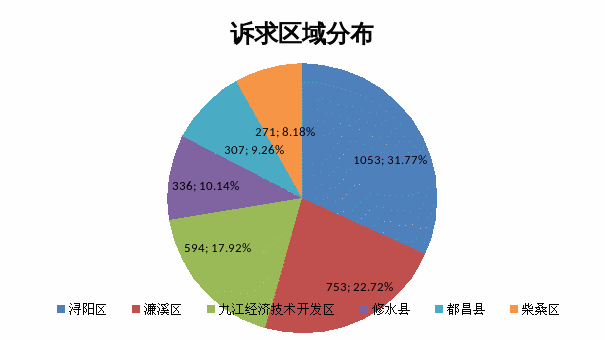 从诉求区域分布来看,浔阳区、濂溪区、修水县3个县区的公安政法类诉求量较大。