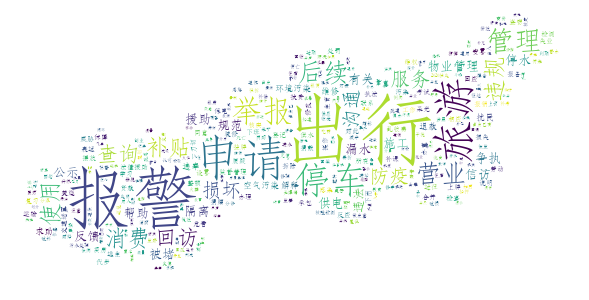 结合近一月市民来电诉求数据,对本期来电诉求内容进行分析,除了工单原本对应的分类外,发现有以下高频新词,其中报警、出行、申请、旅游、停车、举报、管理等内容出现频率比较高。具体来看,与高频词相关的问题包括: