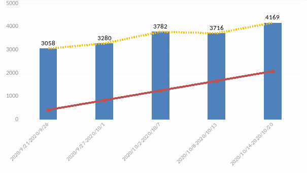 2020年9月21日至10月20日,平均每日话务量约580件,其中话务量最多时间段为10月14日至10月20日,达4169件,日均约694件。