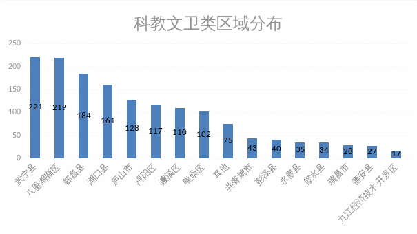 从诉求区域分布来看,武宁县、八里湖新区、都昌县及湖口县4个区县的科教文卫类诉求量较大,主要集中在教育方面(多数为学生反映学校在国庆、中秋放假期间违规补课等问题)。九江经济技术开发区诉求量整体较少。