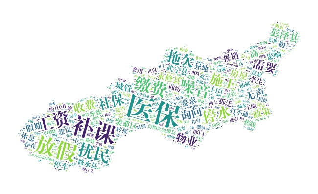 通过近一个月来市民来电诉求数据,分析得知,除了工单原本对应的分类外,系统派生出以下高频词,其中医保、补课、放假、噪音、工资拖欠、停水等内容出现频率比较高,较上月相比出现新高频词“补课”、“放假”,而“房屋”、“城管”类热词的出现频率相较减少。与高频词相关的问题包括: