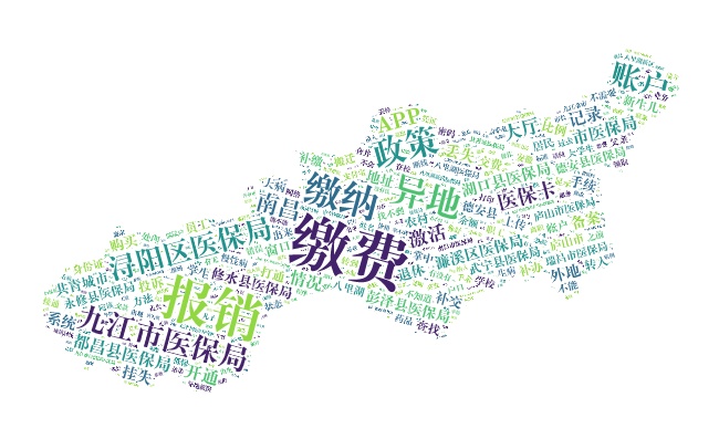 1.医保:“医保”依旧位列本月热频词之首。细分“医保”问题中经常出现的高频词,发现医保类工单的诉求频率主要集中在10月9日至今的工作日;高频地区为浔阳区;诉求人多为男性且拨打热线时情绪平和,诉求内容主要为市民向热线中心咨询的各市、县的医保局电话。其中,咨询医保问题最多的地区为九江市医保局与浔阳区医保局,主要咨询问题包括医保局联系方式与医保缴费的相关信息。
