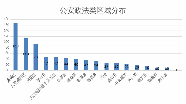 从诉求区域分布来看,公安政法类诉求濂溪区、八里湖新区及浔阳区3个地区的诉求量较大。瑞昌市和武宁县诉求量整体较少。
