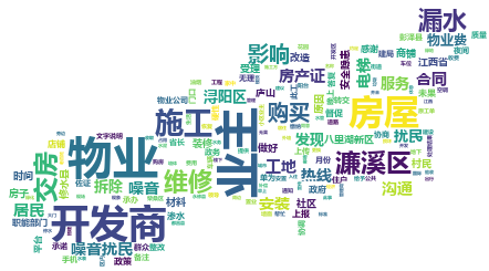 生活环境类诉求包括物业、房屋、开发商和施工四个热点,主要表现在噪音扰民和物业相关问题等方面。