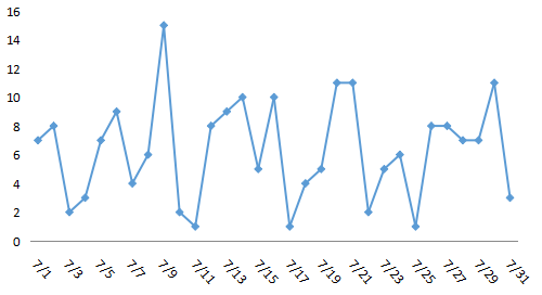 对当月营商环境类诉求做诉求受理时间分析发现,市民主要在7月9日对此类诉求进行投诉。