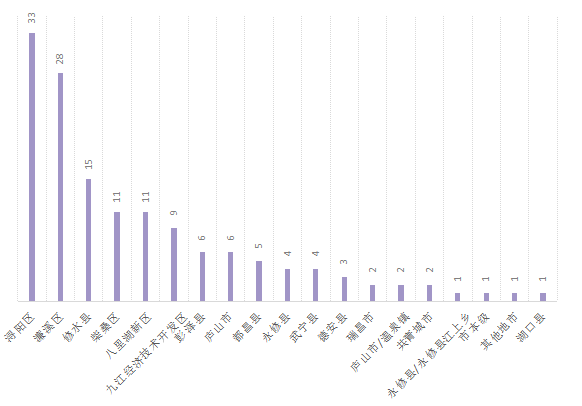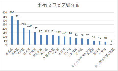从诉求区域分布来看,科教文卫类诉求在都昌县、濂溪区及浔阳区的分布量较大。庐山西海风景名胜区诉求量整体较少。