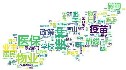 通过9月份市民来电诉求数据分析得知,除了工单原本对应的分类外,系统派生出以下高频词,其中医保、疫苗接种、业主物业和热线政策等内容出现频率较高,与高频词相关的问题包括: