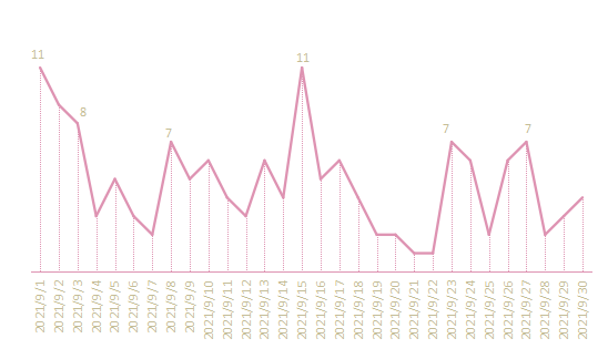 对当月营商环境类诉求做诉求受理时间分析发现,市民主要在9月1日和9月15日对此类诉求进行投诉。