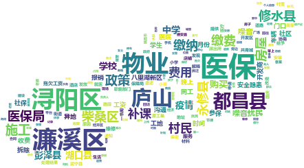 通过10月份市民来电诉求数据分析得知,除了工单原本对应的分类外,系统派生出以下高频词,其中医保缴费、物业服务、工地施工等内容出现频率较高,与高频词相关的问题包括: