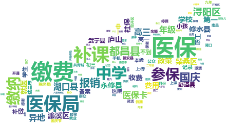 1.医保:主要表现在咨询医保局电话、查询医保记录、医保报销与医保缴费等方面。细分“医保”热点中经常出现的问题,发现此类诉求高频地区为浔阳区和都昌县;诉求高频日期为每周一和周五;诉求复电率为9.98%;诉求人性别男女比例约为2:1。