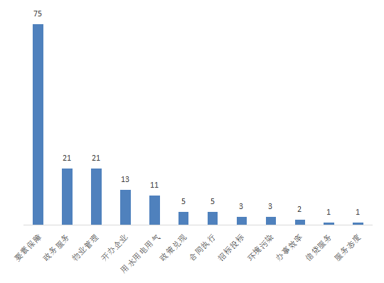 投诉类563件,占比2.74%,主要涉及治安交管、住房保障、交通港口、卫计健康、旅游服务、城乡建设、市监消保、绿化市容、环境保护等问题;