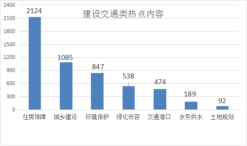 2.建设交通类诉求共5349件,其中住房保障诉求居多,共2124件,占比39.71%;城乡建设1085件,占比20.28%;环境保护847件,占比15.84%;绿化市容538件,占比10.06%;交通港口474件,占比8.86%;水务供水189件,占比3.53%;土地规划92件,占比1.72%。