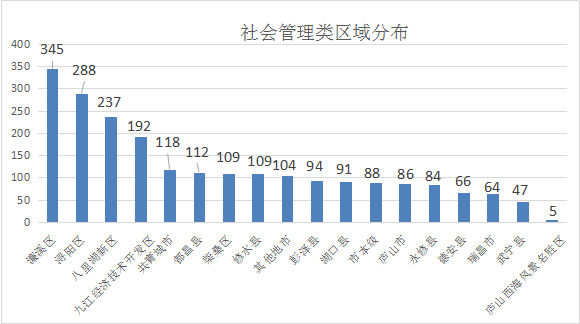 从诉求区域分布来看,社会管理类诉求在濂溪区、浔阳区及八里湖新区的分布量较大。