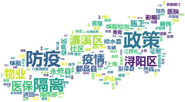 通过对5月份市民来电诉求数据分析得知,除了工单原本对应的分类外,系统派生出以下高频词,其中防疫隔离、物业服务、医保缴费等内容出现频率较高,与高频词相关的问题包括: