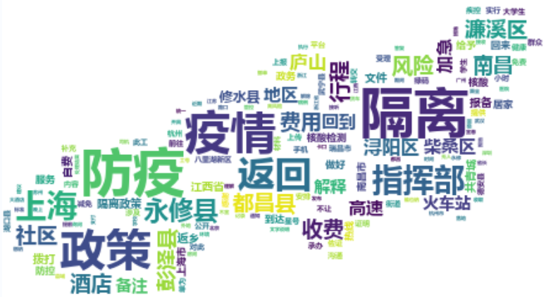 隔离:主要表现在咨询集中隔离政策、隔离收费、隔离环境等方面。细分“隔离”热点中经常出现的问题,发现此类诉求高频地区为都昌县;诉求高频日期为每周一;复电率为19.12%;诉求人性别男女比例约为3:1。