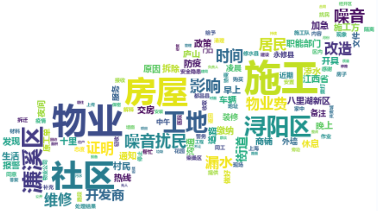 生活环境类诉求包括物业、社区、施工、房屋四个热点,主要表现在物业服务、社区防疫政策、施工噪音、房屋拆迁等方面。
