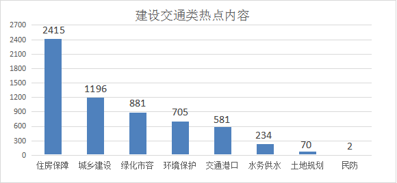 1.建设交通类诉求共6084件,其中住房保障居多,共2415件,占比39.69%;城乡建设1196件,占比19.66%;绿化市容881件,占比14.48%;环境保护705件,占比11.59%;交通港口581件,占比9.55%;水务供水234件,占比3.85%;土地规划70件,占比1.15%;民防2件,占比0.03%。