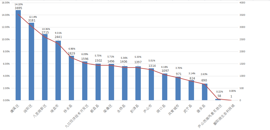 从企业群众诉求行政区域分布总体来看,10月份九江地区诉求工单共26213件。(说明:不包含市直单位数据)