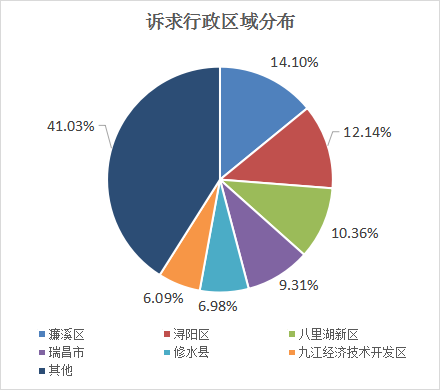 从诉求区域分布来看,公安政法类诉求在瑞昌市、浔阳区及八里湖新区的分布量较大。