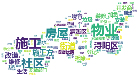 生活环境类诉求包括物业、社区、施工、房屋四个热点,主要表现在物业服务、社区防疫政策、施工噪音、房屋拆迁等方面。