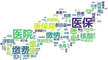 通过10月份市民来电诉求数据分析得知,除了工单原本对应的分类外,系统派生出以下高频词,其中防疫隔离、医保缴费、物业服务等内容出现频率较高,与高频词相关的问题包括: