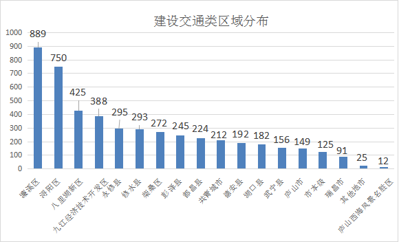 从诉求区域分布来看,建设交通类诉求在濂溪区、浔阳区及八里湖新区的分布量较大。