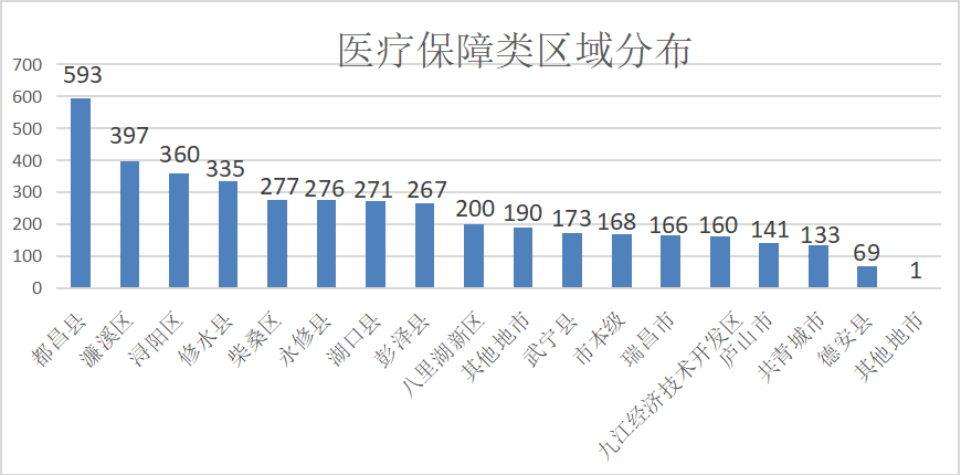 从诉求区域分布来看,医疗保障类诉求在都昌县、濂溪区及浔阳区的分布量较大。