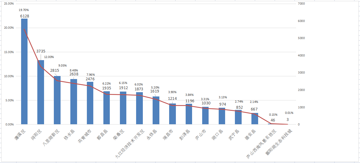 从企业群众诉求行政区域分布总体来看,11月份九江地区诉求工单共31113件。(说明:不包含市直单位数据)