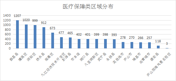 从诉求区域分布来看,医疗保障类诉求在都昌县、濂溪区及浔阳区的分布量较大。