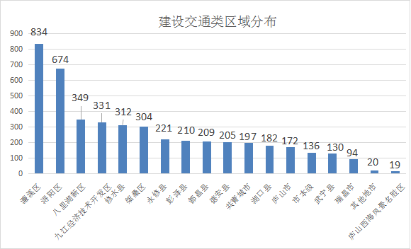 从诉求区域分布来看,建设交通类诉求在濂溪区、浔阳区及八里湖新区的分布量较大。