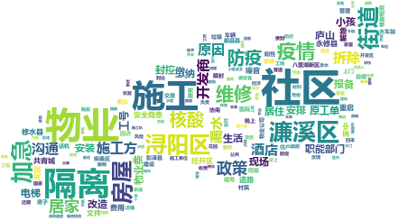 通过12月份企业群众来电诉求数据分析得知,除工单原本对应的分类外,系统派生出以下高频词,其中防疫隔离、医保缴费、物业服务等内容出现频率较高,与高频词相关的问题包括: