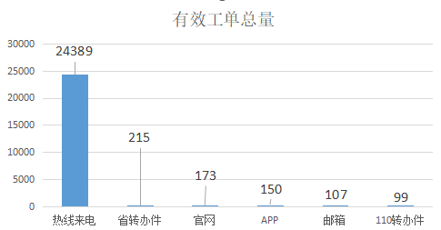 12345热线共登记有效工单25133件(其中通过“热线来电”渠道受理工单24389件、“省转办件”渠道受理工单215件、“官网”渠道受理工单173件、“APP”渠道受理工单150件、“邮箱”渠道受理工单107件、“110转办件”渠道受理工单99件)。