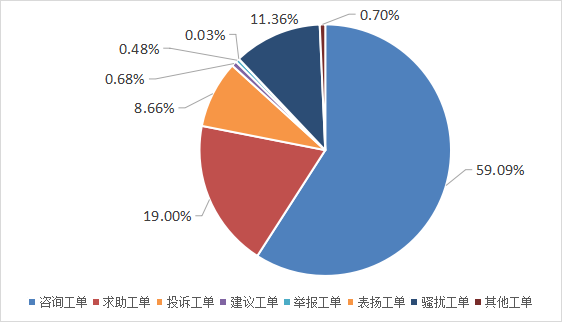 骚扰类2854件,占比11.36%,主要为无明确诉求来电。