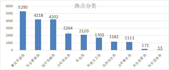 建议类171件,占比0.68%,主要涉及城乡建设、治安交通、交通港口、学校教育等问题;