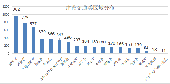 从诉求区域分布来看,建设交通类诉求在濂溪区、浔阳区及八里湖新区的分布量较大。
