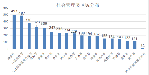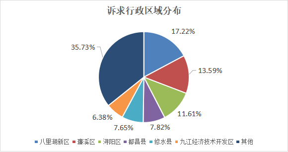 从诉求区域分布来看,社会管理类诉求在濂溪区、八里湖新区及九江经济技术开发区的分布量较大。
