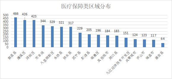 从诉求区域分布来看,医疗保障类诉求在都昌县、濂溪区及浔阳区的分布量较大。