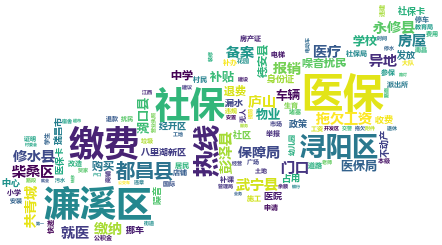 通过2月份企业群众来电诉求数据分析得知,除工单原本对应的分类外,系统派生出以下高频词,其中医保缴费、物业服务、拖欠工资等内容出现频率较高,与高频词相关的问题包括: