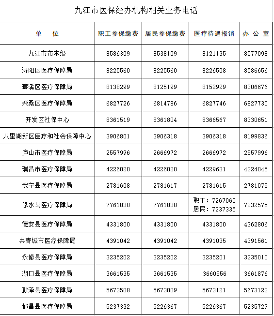 想咨询医保业务办理?九江医保经办机构电话都在这→